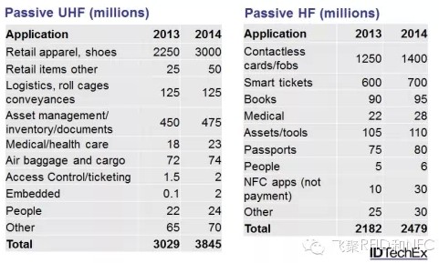 无源RFID标签量达到69亿枚,比2013年增长11.2亿枚。市场研究公司IDTechEx发现,无源RFID市场开始显现海量增长,比行业预计的发展晚了5年。