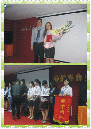 在主持人宣布团队的总成绩时,冠军团队也露出水面了,没错,冠军就是由尹凤尹主管带领的的追梦队夺得,给他们献上掌声!这次的第二名和第一名差了几万元的业绩。希望创新佳的佳人们都再能再次努力,一起向前冲!追梦队 能在三月份夺冠,是因为部门的新人都有了很大的突破,为部门的冠军出了一份力量,所以,每个人新人都不要抱怨自己没有业绩,只要你坚持,相信一定会有收获的!这次的业绩前五名的同事是何益霞、李闯、但萍、王艺琴,他们业绩都有所提高的,希望他们还是保持一如既往的热情去做好自己的工作!